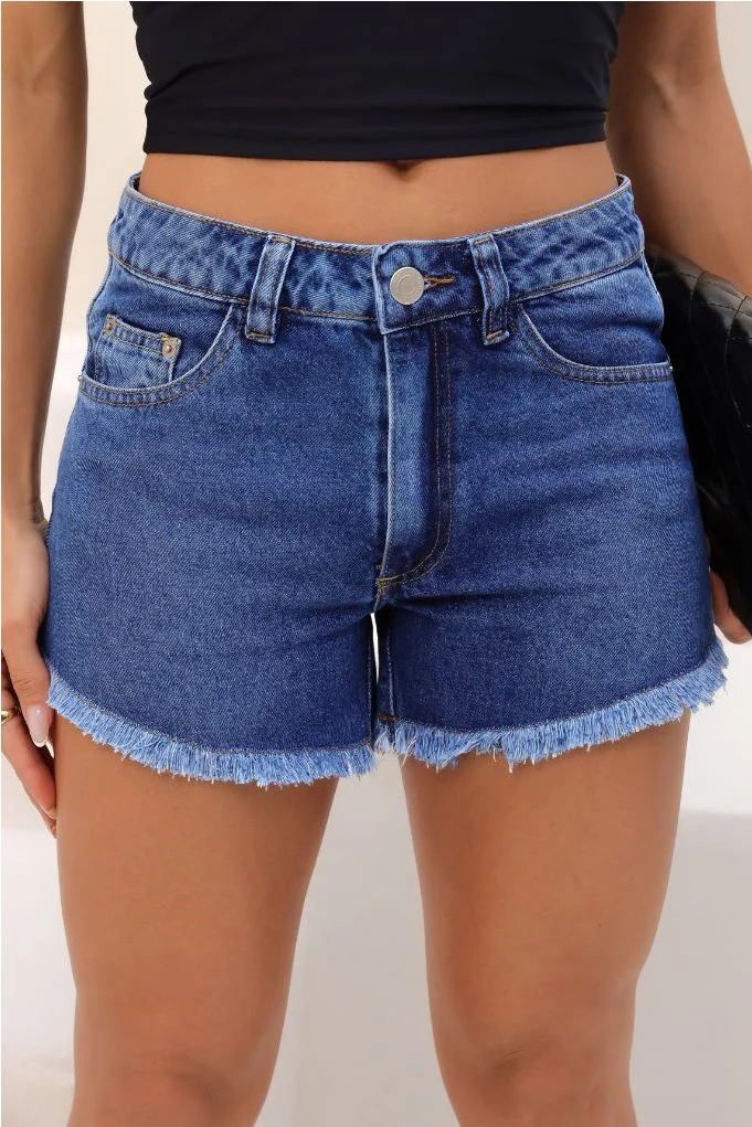 Um modelo que agrada o público mais jovem e descolado. O shorts jeans boyfriend com barra desfiada da Revanche Chipre entrega estilo urbano e leveza para o verão.
