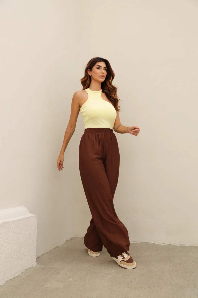 7. Calça reta Birta com elástico no cós
