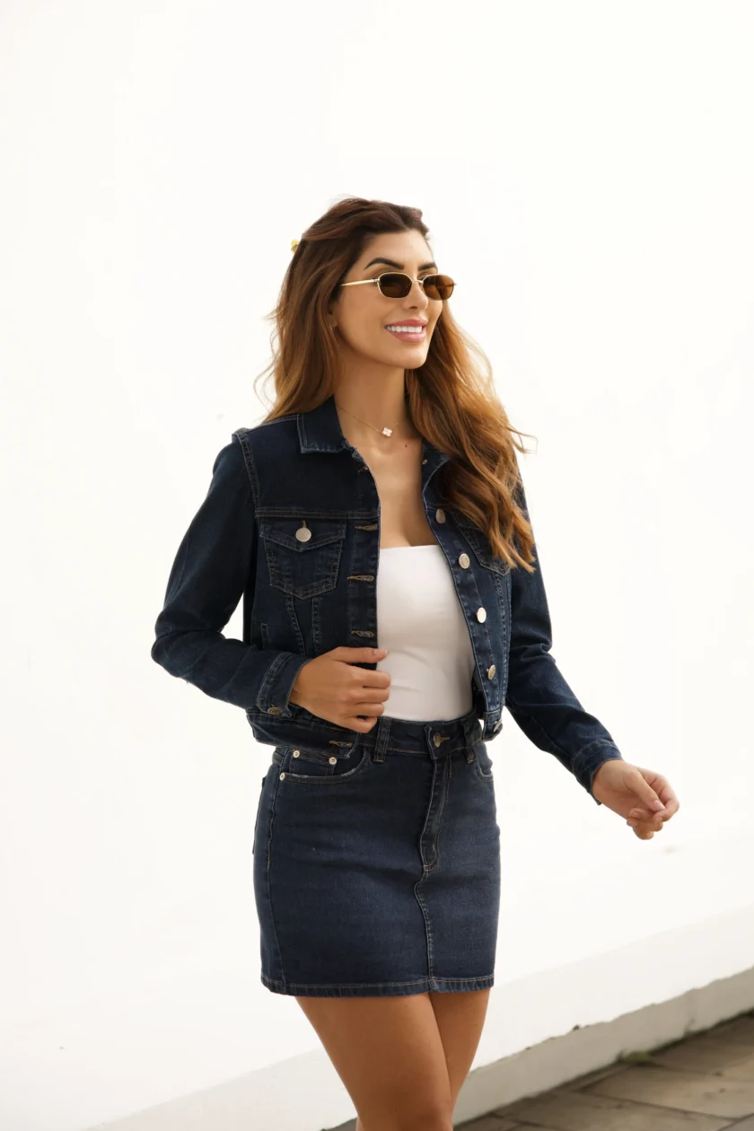 Vai bem sobre vestidos fluidos, com saias leves ou acompanhando calças jeans, criando o tradicional look all jeans. Ideal para noites mais frescas, a peça se mantém como curinga para consumidores que buscam estilo aliado à funcionalidade.