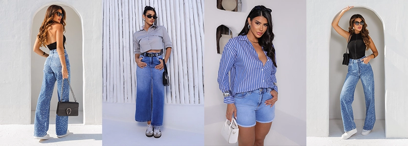 Outra peça essencial para a meia estação é a Calça Jeans Wide Leg Shine. As calças wide leg têm ganhado espaço por sua modelagem solta, proporcionando conforto e estilo.