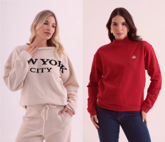 O moletom Aiuaba reforça a presença de peças confortáveis no mix. Modelos básicos possuem grande aceitação. Além disso, são fáceis de combinar com outras categorias da loja. Esse tipo de produto mantém o giro das roupas de outono/inverno 2026.