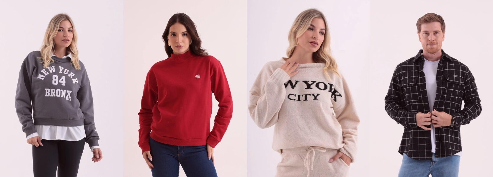 A nova coleção traz roupas de outono/inverno 2026 pensadas para atender diferentes perfis de consumidores. As peças combinam estilo, conforto e potencial comercial.